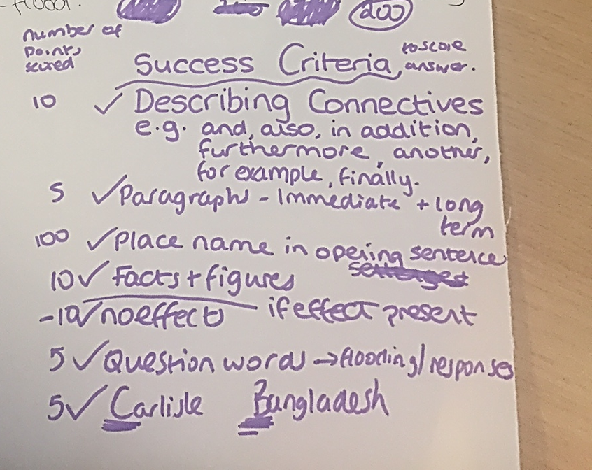 A useful activity to get students to engage with the key elements of a mark scheme.