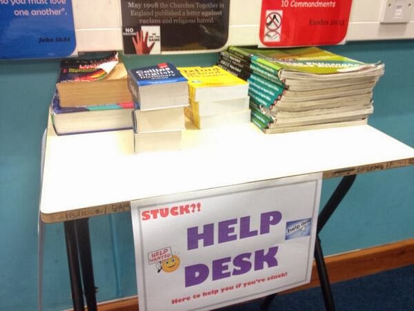 The help desk could also contain EMERGENCY HELP sheets- where students can go and find out an answer/or get help for a particular task they are currently completing. This is more specific help to the lesson.