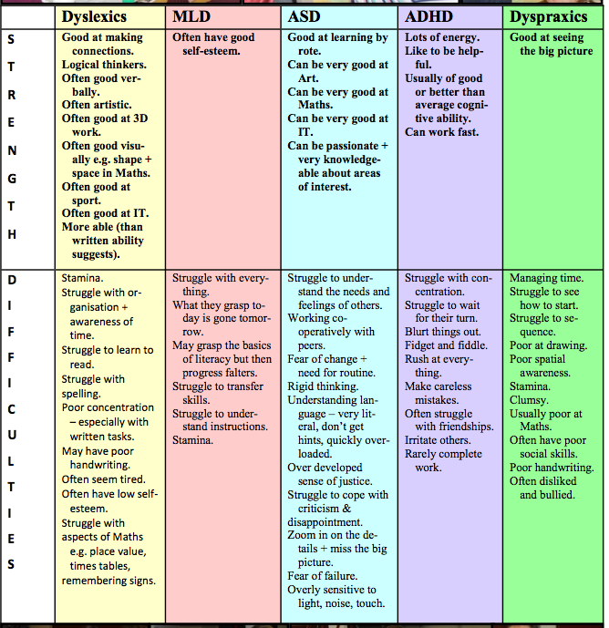 Please note that the strengths section in MLD is empty because their strengths are just like any ‘other’ student, so I don’t feel it needs to be populated.