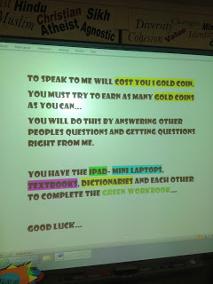 At the start of the lesson students are given Gold Coins- the amount depends on you/the student- I gave 3…